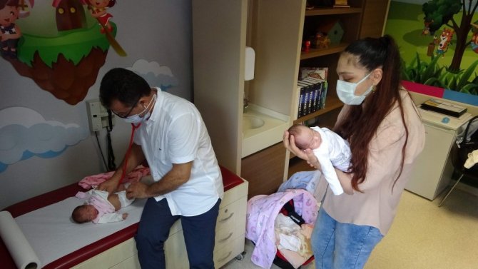 Çocuk Sağlığı ve Hastalıklar Uzmanı Dr. Adnan Aslan'da doğumun sıra dışı bir doğum olduğunu kaydederek, "Sıra dışı doğumlarımız devam ediyor. Rizeli aile, anne 26 yaşında. Annenin ikinci gebeliği. Bebekler 34 haftalık olarak yaklaşık 6 hafta kadar önce sezeryanla dünyaya geldi. Bebeklerimizin 1 tanesi kız, bin 350 gram, erkekler ise bin 500- bin 600 gram civarındaydı. İkisi akciğer yetmezliği ile doğdu, birinin klinik durumu daha iyi idi. Takipler neticesinde bebekleri ailesine sağlıklı bir şekilde teslim ettik. Kendilerine bir takım önerilerde bulunduk ve çocuklarına kavuştular son derece mutlu bir ortam oldu. Onlarda çok mutlu bizde çok mutlu olduk. Benim bu zamana kadar rastladığım ikinci üçüz gebelik. Tüp bebeklerde daha sık görülüyor. Diğer vakamız 40 yaşında idi bu anne ise 26 yaşında. İlk gebeliği düşük, ikinci gebeliği normal gebelik, üçüz bebek olarak gerçekleşti" dedi.