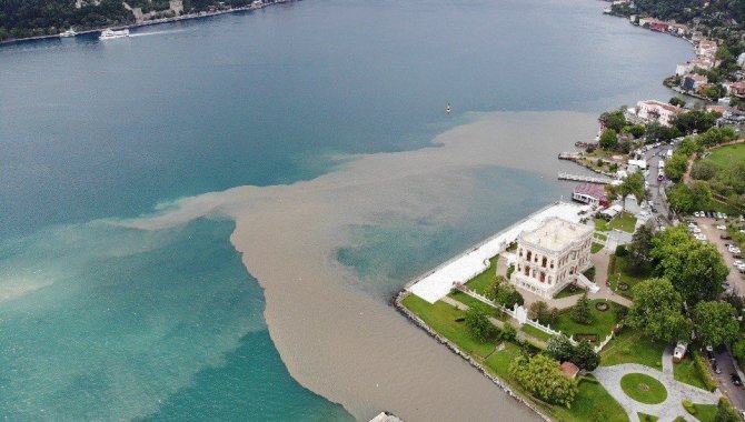 İstanbul'da etkili olan yağışlar sonrası Küçüksu ve Göksu derelerinden gelen çamurun boğazla buluşmasıyla, mavi suyun rengi kahverengiye döndü. Suyun renginde yaşanan değişim ise havadan görüntülendi.