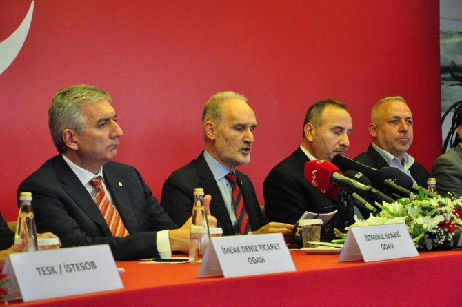 Barış Pınarı Harekatı’na destek amacıyla İstanbul iş dünyasını temsilen; İSO Başkanı Erdal Bahçıvan, İSTİB Başkanı Ali Kopuz, İMEAK DTO Başkanı Tamer Kıran, İSTESOB Başkanı Faik Yılmaz, HAK-İŞ İstanbul İl Başkanı Mustafa Şişman, MEMUR-SEN İstanbul İl Başkanı Talat Yavuz, TÜRK-İŞ İstanbul 1. Bölge Temsilcisi Adnan Uyar, KAMU-SEN İstanbul İl Temsilcisi Remzi Özmen ve TZOB İstanbul İl Koordinasyon Kurulu Başkanı Ömer Demir’in katıldığı basın toplantısında ortak açıklama metnini İTO Başkanı Şekib Avdagiç okudu.