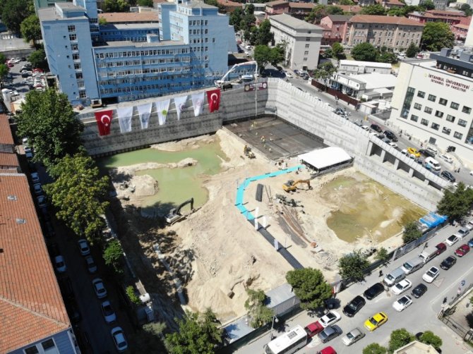 Eski binaların yenilenmesinin sağlık hizmetleri açısından da önemli olduğunu ifade eden İstanbul Tıp Fakültesi Dekanı Prof. Dr. Tufan Tükek, "İstanbul Tıp Fakültesi Binaları çok eski, 1980 öncesine dayanan binalarla hizmet veren bir yapıdaydı. En son 2 sene öncesi 5.8'lik deprem sonrasında zaten bir sıkıntı oldu ve olası İstanbul depremine hazırlanmamız gerektiğini bildiğimizden yeni binaların oluşması sürecine hızlı bir şekilde başladık. Öncelikle Nörolojik Bilimler Binası'nı bitirdik. Daha sonra da Dahili Tıp Bilimleri Binası için bu alanda, aşağı yukarı 10 dönümlük bir alan içerisinde 38 bin metrekarelik, 200 yataklı 2 bloktan oluşan bir bina şeklinde planlamamızı yapıyoruz. Bu bina içerisinde dahiliye, göğüs hastalıkları, kardiyoloji, enfeksiyon hastalıkları, aile hekimliği birimleri hizmet verecek. Özellikle 30 yataklı bir yoğun bakımımız ve 25 yataklı bir kardiyoloji yoğun bakım ihtiva eden bir alan içerisinde kuruldu. Her şey yolunda giderse 2023 gibi bitirmeye çalışacağız. Son bir yılı pandemi sürecinin getirmiş olduğu sıkıntılar burada çalışan işçilerin de koronaya yakalanması nedeniyle süreç biraz uzadı. Zaten bir yıldır hazırlık yapılıyordu, mutlu sona ulaştık temelimizi attık. Deprem için izolatörlerin hazırlanması büyük bir zaman gerektiriyordu o dönem atlatıldı. Temel atma işleminden sonra binanın üst tarafının daha kolay olacağını düşünüyoruz" dedi.