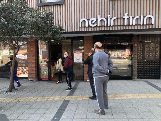 İki günlük sokağa çıkma yasağının ilk gününde fırınlarda ekmek üretimi ve satışı sorunsuz bir şekilde yapılmaya devam ediyor. Fırınların önünde ise sosyal mesafeyi koruyarak sıraya giren vatandaşlar ekmeklerini satın alabiliyorlar.