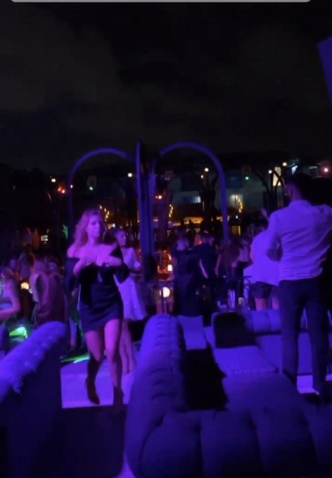 Dünyayı etkisi altına alan korona virüs salgınıyla mücadele devam ederken, İstanbul’da artan vaka sayılarına rağmen Beşiktaş Kuruçeşme’de açık hava bir eğlence mekanına gelenler ne maske taktı ne de sosyal mesafe kurallarına uydu. Hem yan yana oturan hem de dans ederek eğlenen müşteriler salgını umursamadı. Yüksek sesli müzikle dans edenler eğlenirken, onlara hizmet eden garsonların da maskelerini düzgün şekilde takmadıkları görüldü. Mekanda eğlenenler o anları kaydedip sosyal medyada paylaştı.