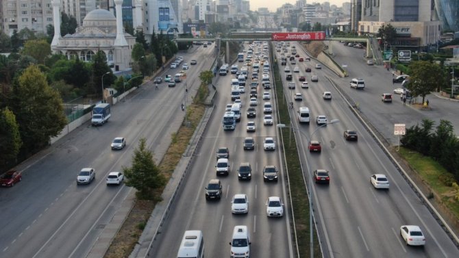 Öte yandan oluşan trafik yoğunluğu havadan görüntülendi.