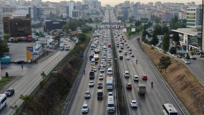 İstanbul'da haftanın ikinci iş gününde erken saatlerden itibaren D-100 karayolunda trafik yoğunluğu başladı.
