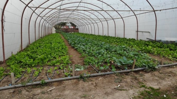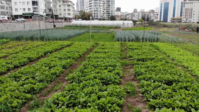 6 dönümlük arazide mevsimlik sebzelerin yetiştirildiği alan ise drone ile havadan görüntülendi. Görüntüler adeta Antalya'daki seraları anımsatırken, devasa binaların arasında organik tarım alanı ve seralar manzarasıyla şaşkına çevirdi.