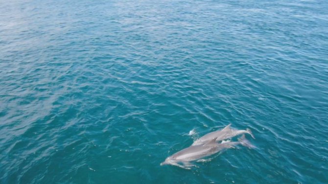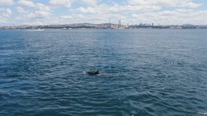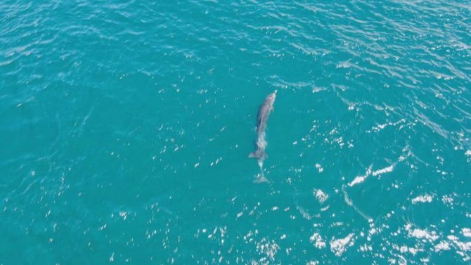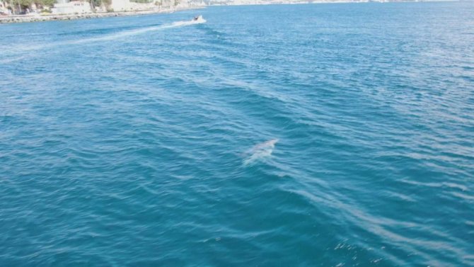İstanbul Boğazı'nın Marmara Denizi girişinde yüzen yunus balıkları görenlerin içini ısıtıyor. Suyun üzerinde zıplarcasına yüzmeleri, gemilerle yarışmaları ve insanlara yakın olması ile bilinen yunus balıkları havadan drone ile görüntülendi. Cankurtaran sahili açıklarında görüntülenen yunuslar, İstanbul tarihi yarımada manzarası ile birlikte kartpostallık görüntüler oluşturdu.