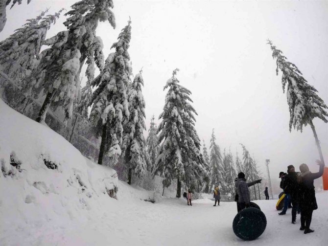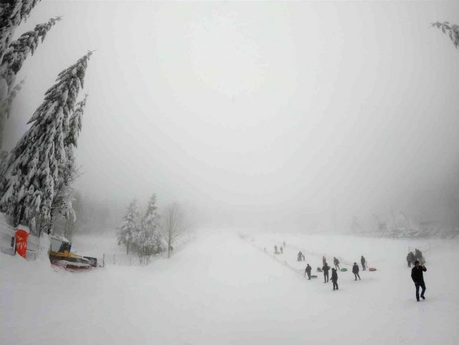 Kocaeli'nin Kartepe ilçesindeki yüksek kesimlere 5 gün önce başlayan kar yağışı, etkisini sürdürmeye devam ediyor. Kar kalınlığının 50 santimetreye yaklaştığı Kartepe, her sene olduğu gibi bu sene de yerli ve yabancı tatilcileri de ağırlamaya başladı. Yoğun kar yağışını fırsat bilen vatandaşlar, günün tadını kar ile çıkarttı. Lapa lapa yağan karı değerlendiren vatandaşlardan bazıları kızak yapmanın tadını çıkarırken, bazıları ise fotoğraf çekerek o anları ölümsüzleştirdi.