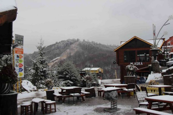 İstanbul’un yanı başındaki kayak merkezinde kar yağmaya başladı