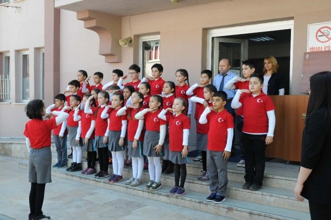 İstiklal Marşı’nın kabulünün 97’nci yıldönümü etkinliğinde Menteşe Dumlupınar İlkokulu 3/D sınıfı öğrencileri İstiklal Marşı’nı işaret diliyle okuyarak farkındalık oluşturdu.