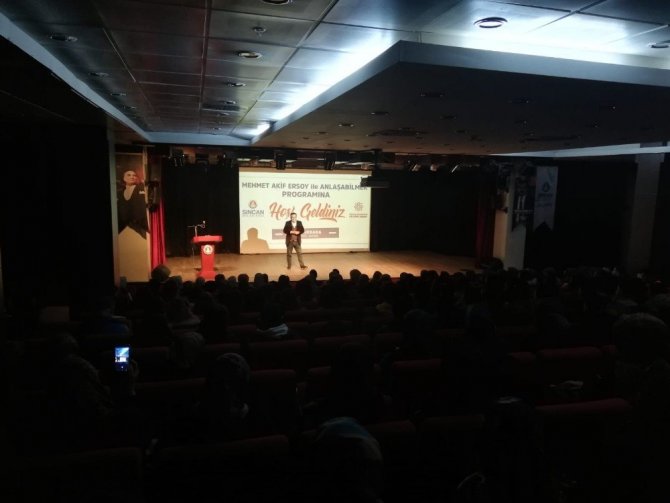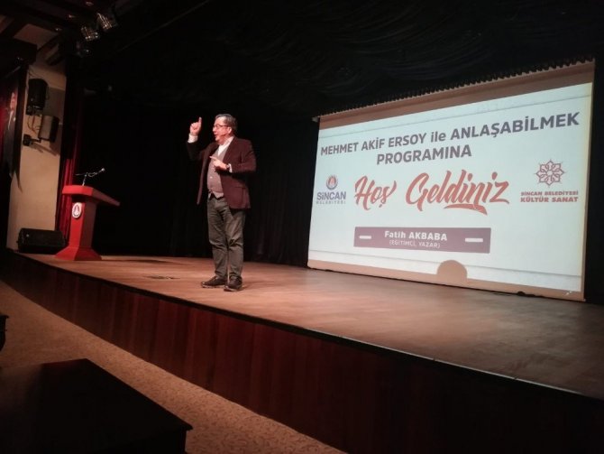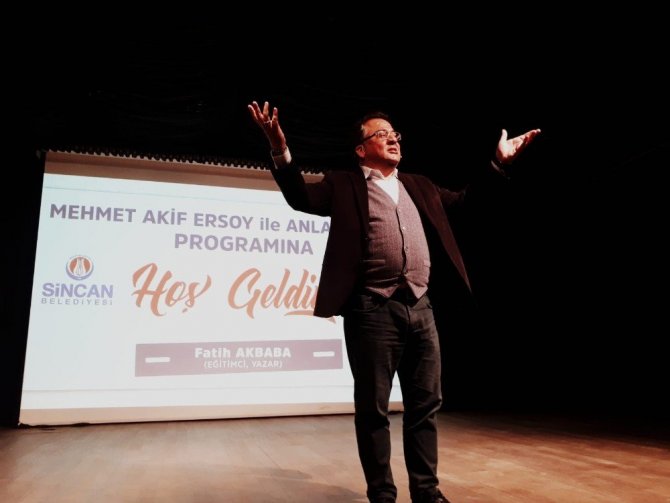 Türk milletinin bağımsızlık mücadelesinin simgesi İstiklal Marşı’nın yazarı Mehmet Akif Ersoy, vefatının 83. yılında yad ediliyor. "20-27 Aralık Mehmet Akif Ersoy’u Anma Haftası" kapsamında Lale Konferans Salonu’nda “Mehmet Akif Ersoy ile Anlaşabilmek” isimli özel bir anma programı düzenlendi. Eğitimci-Yazar Fatih Akbaba, farklı sunumuyla Sincanlılara Mehmet Akif Ersoy’un bilinmeyen yönlerini anlattı. Özellikle gençlere seslenen Akbaba, Milli Şairimize hak ettiği değerin verilmesi gerektiğini ifade etti. Çeşitli hikayelerle Mehmet Akif Ersoy’un hayatına ışık tutan Akbaba, şairin hayatının özümsenmesi ve gençlere örnek olması gerektiğini söyledi. Mehmet Akif Ersoy’un Kur’an-ı Kerim ve Peygamber aşığı olduğunu belirten Akbaba, Milli Mücadele’nin başlatılmasında önemli rol oynadığını aktardı.