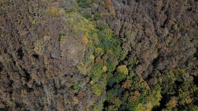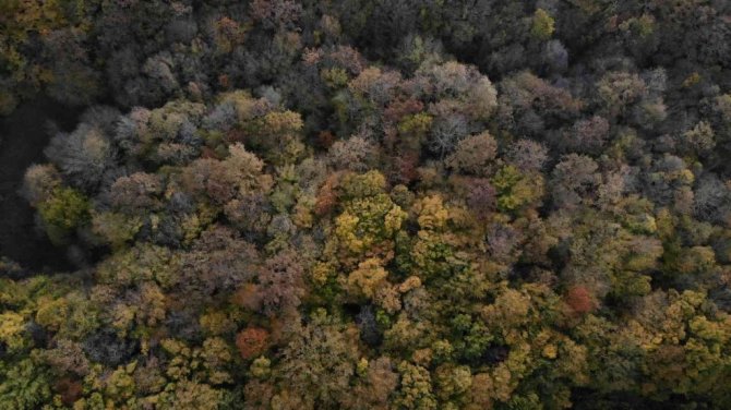İlkbahar ve yaz mevsimi boyunca dağların üzerini kaplayan yeşil örtü, sonbaharın gelmesiyle yerini sarının tonlarına bıraktı. Istranca ormanlardaki renk cümbüşü havadan görüntülendi.