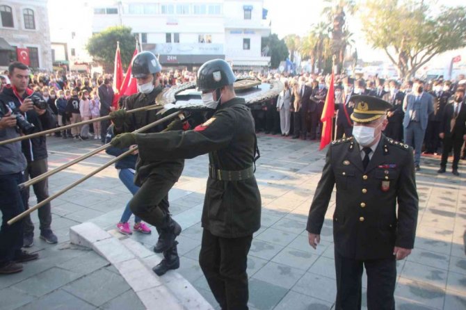 Türkiye Cumhuriyeti'nin kurucusu büyük önder Gazi Mustafa Kemal Atatürk, tüm yurtta olduğu gibi Bodrum'da da çeşitli etkinliklerle anılıyor. Anma programı, sabah saatlerinde Bodrum Belediye Meydanı'nda gerçekleştirilen törenle başladı. Törene; Bodrum Kaymakamı Bilgehan Bayar, Belediye Başkanı Ahmet Aras, Bodrum Cumhuriyet Başsavcısı Şükrü Arslan, İlçe Garnizon Komutanı Güngör Gündoğan, AK Parti Muğla Milletvekili Mehmet Yavuz Demir, gaziler, daire amirleri, oda başkanları ve çeşitli STK temsilcileri, öğrenciler, öğretmenler ve çok sayıda vatandaş katıldı.