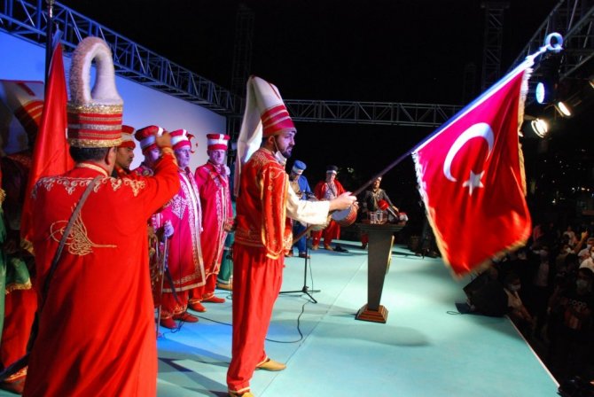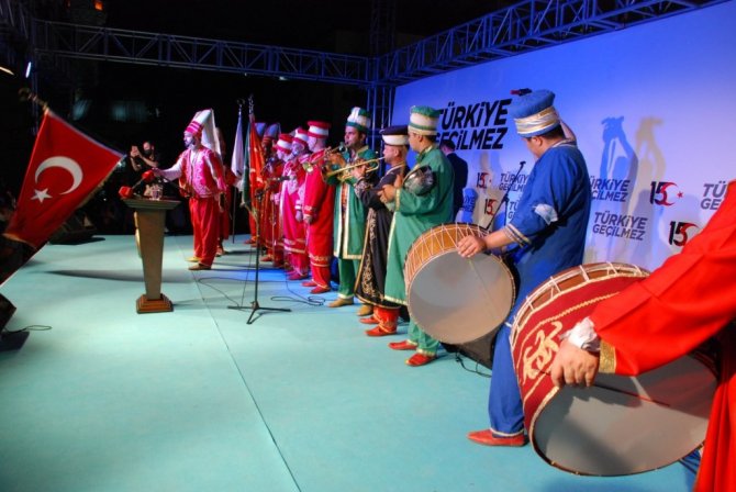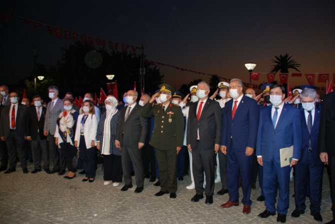 Vali Köşger'in konuşmasının ardından Kur'an-ı Kerim tilaveti okunurken, daha sonra mehter takımı sahneye çıktı. Ardından İzmir İl Gençlik Spor Müdürlüğünce düzenlenen 15 Temmuz Şehitleri Sancak Koşusu Sancak Teslimi töreni düzenlendi.
