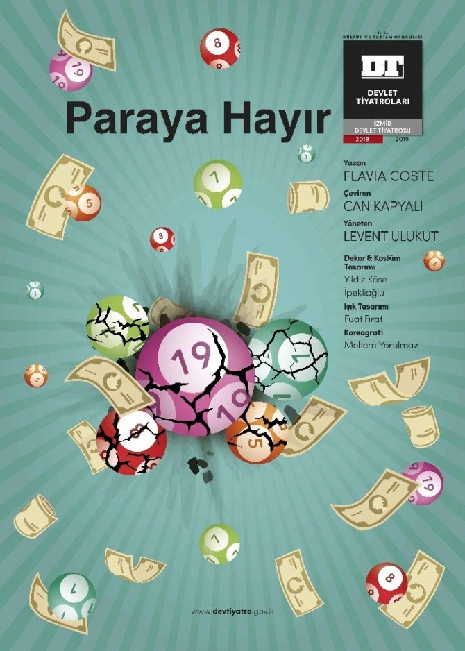 2018-2019 sezonunda “Nereye”, “Prömiyer Partisi” “İkimizin Dünyası” ve “Oğul” ile izleyicileriyle buluşan İzmir Devlet Tiyatrosu, bu kez çağımızın en büyük sorunu "Gerçek mutluluk gerçekten parada mı? sorusunu akıllara eğlenceli bir üslup ile düşürüyor. Fransız yazar Flavia Coste’nin kaleme aldığı, Can Kapyalı’nın çevirmenliğini üstlendiği, İzmir Devlet Tiyatrosu Müdürü Levent Ulukut’un hem yönetip hem de oynadığı "Paraya Hayır" adlı oyun, 18 Aralık Salı günü prömiyerini yapıyor, tiyatroseverlerle buluşuyor.