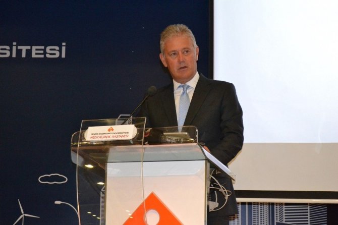 Rektör Prof. Dr. Murat Aşkar, Türkiye’de en çok tercih edilen 10 vakıf üniversitesinden biri olduklarına dikkat çekerek, Tıp Fakültesinin de gelişimini hızla sürdürdüğünü belirtti. Prof. Dr. Aşkar, “Birçok alandaki performansını, aldığı yurt dışı akretide kalite belgeleri ile kanıtlayan Medical Park İzmir Hastanesi ile olan birlikteliğimiz, İzmirimiz’e yeni bir dinamizm katacak. İş birliğimiz kapsamında, Medical Park Hastanesinde görevlendirilmek üzere, 57 yeni öğretim üyesinin akademik kadromuza katılması işlemleri sürdürülüyor. Bu konuda Medical Park yönetimi ile çok uyumlu bir iş birliği ortamı içinde olduğumuzu belirtmek isterim. Eylül ayından itibaren Tıp Fakültesinde eğitim gören, dördüncü sınıftaki 35 öğrencimiz, klinik eğitimlerine İzmir Ekonomi Üniversitesi Medical Park Hastanesi’nde başlayacak. Bunun yanı sıra, Sağlık Bilimleri Fakültemizden 148 öğrencimiz, Sağlık Hizmetleri Meslek Yüksekokulumuzdaki 150 öğrencimiz, uygulamalı derslerini Medical Park’ta yapıyor olacak. Medical Park Hastanesi ile çok değişik alanları kapsayacak biçimde, kısa ve uzun vadeli projeler geliştireceğiz. Araştırma ve geliştirme faaliyetlerinin içinde olacağız” dedi.
