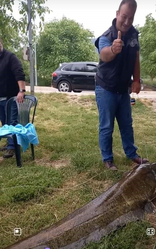 İzmir'in Ödemiş ilçesinde amatör bir balıkçı, 2 metre 10 santim boyunda 55 kilo ağırlığında dev yayın balığı yakaladı.
