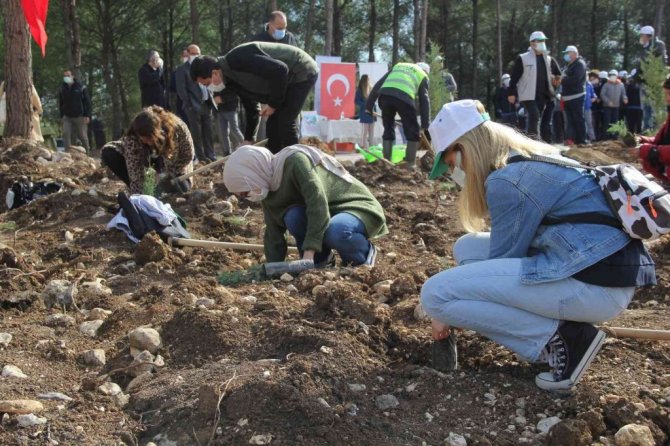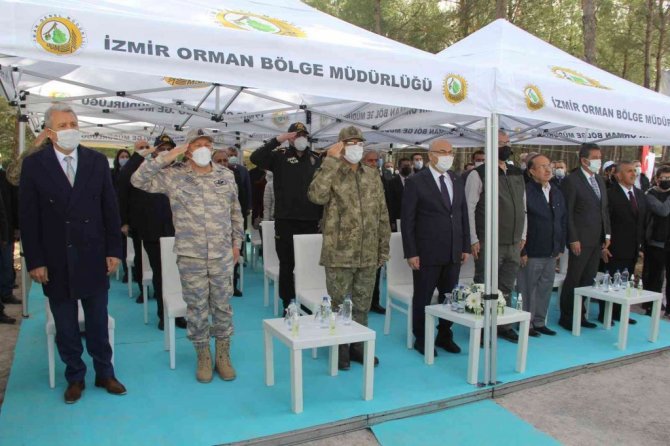 Zafer Derince ise İzmir'de 19 noktada 65 bin fidan dikildiğini belirterek, "İzmir'de 2021 yılının sonuna kadar 12 milyon 775 bin toprakla buluşmuş olacak. Dikim yapacağımız bu alan 12 Temmuz 2021'de yanmıştı. Buraya 3 bin adet kızılçam, bin adet mavi servi dikeceğiz" dedi.