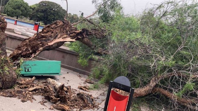 İzmir'de kuvvetli fırtına nedeniyle kent genelinde 33 ağacın zarar görürken, fırtına Menderes, Tire, Karaburun ve Foça'da çatıların uçmasına neden oldu. İzmir Büyükşehir Belediyesi ekipleri yaşanan olumsuzluklara anında müdahale etti.
