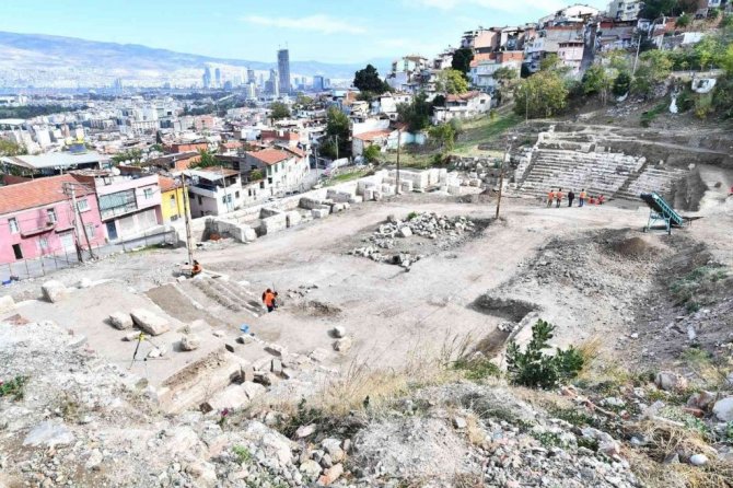 Bin 500 yıl önce üzeri toprakla kapanan ve gün yüzüne çıkarılması için İzmir Büyükşehir Belediyesinin de desteğiyle kazı çalışmaları süren antik kente ait tiyatroda latrina (tuvalet) bulundu. Smyrna Antik Kenti Kazı Başkanı, İzmir Katip Çelebi Üniversitesi Türk-İslam Arkeolojisi Bölümü Öğretim Üyesi Doç. Dr. Akın Ersoy, Kültür ve Turizm Bakanlığının izniyle İzmir Katip Çelebi Üniversitesi adına yürütülen çalışmalarda hiç beklemedikleri buluntularla karşılaştıklarını, heyecanlı olduklarını söyledi.