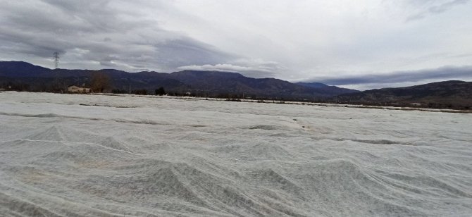 İzmir'in Ödemiş ilçesindeki patates üreticileri yağışların ardından hasada hazırlanıyor. Ürününü kış sonuna bekletmek isteyen bazı üreticiler de don tehlikesine karşı tarlaları elyafla örtmeye başladı.