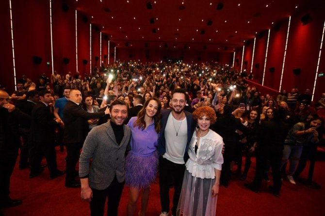 Filmin oyuncuları Açelya Topaloğlu ve Özgür Emre Yıldırım da galaya gelen izleyicilere teşekkür etti.