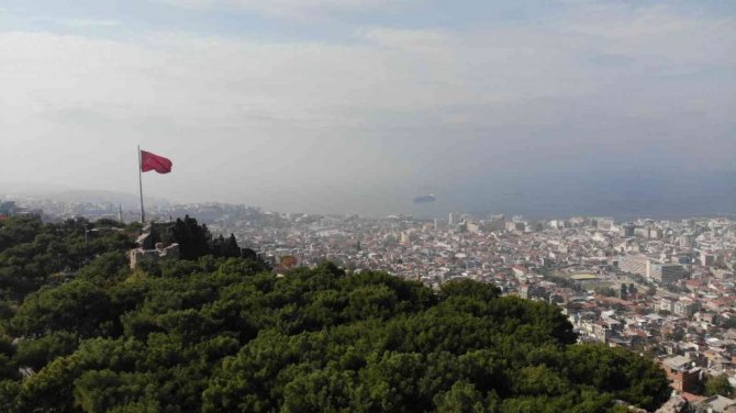 İzmir'in çeşitli ilçelerinde sabah saatlerinden bu yana sis etkisi yaşanıyor. Yoğun sis nedeniyle görüş mesafesinin azaldığı gözlenirken, İzmir'in sis altındaki genel görünümü, Kadifekale mevkiinde havadan görüntülendi.