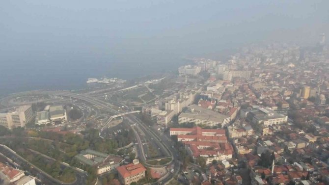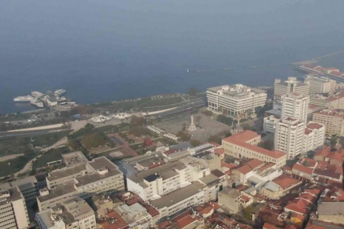 Kentin simgesi olan Saat Kulesi'nin de bulunduğu Atatürk Meydanı sis altında görüntülenirken, körfez üzerinde meydana gelen yoğun sis de görüntülere yansıdı.