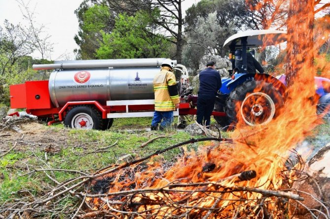 İzmir'in Akdeniz kuşağında bir kent ve yangın riski açısından çok hassas bir coğrafya olduğu ifade edilirken, farklı ağaç türlerinin yangına karşı dirençlerinin değişkenlik gösterdiği aktarıldı.