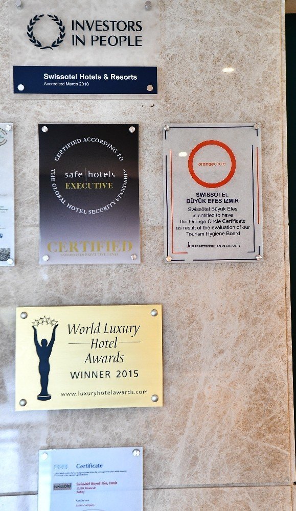 Küresel salgının ardından kentteki turizm faaliyetlerinin sağlıklı bir şekilde devam edebilmesi için hayata geçirilen Turuncu Çember uygulamasında konaklama tesisleri kategorisinde ilk Turuncu Çember’i Swissotel Büyük Efes aldı. İzmir Kültür Sanat Buluşması için Swissotel’de bulunan İzmir Büyükşehir Belediye Başkanı Tunç Soyer, Turuncu Çember sertifikasını Swissotel Büyük Efes Genel Müdürü H. Rıza Elibol’a teslim ederken “Swissotel Büyük Efes İzmir’in sembollerinden biri. Bugün yine bir öncülük yaparak ilk Turuncu Çember’i alan konaklama tesisi oldu. Tebrik ediyorum. İzmir’e örnek olmasını diliyorum” diye konuştu. Rıza Elibol ise teşekkür ederek “Umarım diğer bütün oteller de bu uygulamaya dâhil olacaklar” dedi. Swissotel Büyük Efes’in Turuncu Çember’in hijyen ve güvenlik kriterlerini karşılayıp karşılamadığını inceleyen Değerlendirme Kurulunda İzmir İl Kültür Müdür Yardımcısı Kaan Erge, İzmir Büyükşehir Belediyesi Toplum Sağlığı Dairesi Başkanlığı personeli Dr. Yusuf Demir, Yaşar Üniversitesinden Doç. Dr. Seda Genç, Ege Turistik İşletmeler ve Konaklamalar Birliği (ETİK) Yönetim Kurulu Üyesi Didem Ersoy, Türkiye Seyahat Acentaları Birliği (TÜRSAB) Ege Bölge Temsil Kurulu Başkanı Tolga Gencer, İzmir Turist Rehberleri Odası Yönetim Kurulu Üyesi Cenk Uysal da yer aldı.