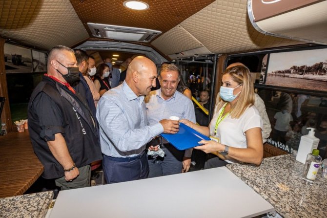 ESHOT Genel Müdür Yardımcısı Kerim Özer, hazırlanan ilk örnek kafeyle ilgili bilgi verirken, "Bu otobüs yıllarca ESHOT'ta emek vermiş bir otobüs. Şoförlerimizin aktarma istasyonlarında problemleri olduğunu gördük. Hurdaya çıkınca Başkanımız Tunç Soyer'e söyledik, "Böyle bir şey yaparsak nasıl olur?" dedik. Başkanımız yenilikçi birisi olduğu için bize onay verdi ve önümüzü açtı. ESHOT 78 yıllık bir kuruluş, müthiş bir altyapısı var. İmkan verilsin yapamayacağı şey yok" dedi.