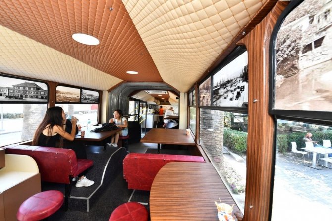 Kentte yıllarca ulaşım hizmeti vermiş fakat şimdilerde kullanılmayan otobüsler İzmir Büyükşehir Belediyesi tarafından kafeye dönüştürülüyor.