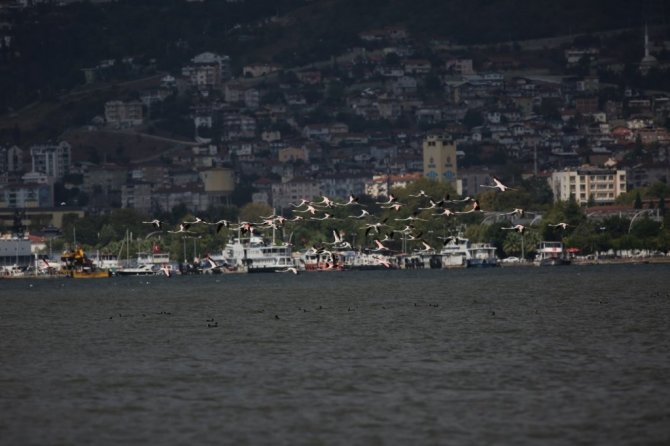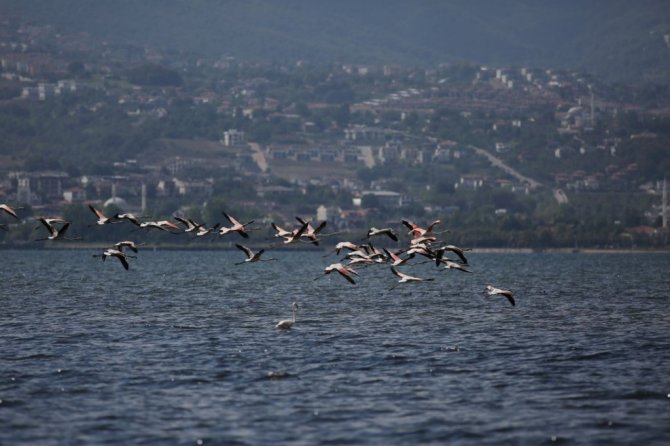 Her yıl olduğu gibi bu yılda İzmit Körfezi, güzel renkleri, uzun bacakları ve kıvrımlı boyunlarıyla dikkat çeken flamingoların uğrak noktası haline geldi. Suyun üzerinde dinlenen ve zaman zaman yiyecek arayan flamingolar, bölgede görünüşleriyle de dikkat çekiyor. Renkleriyle görsel şölen yaşatan flamingolar, kartpostallık görüntüler oluşturuyor.