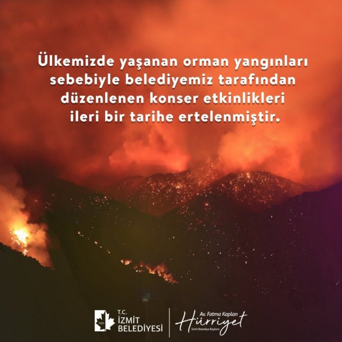 İzmit Belediyesinin yerel müzisyenleri desteklemek amacıyla düzenlediği, "Sahne Senin, Müzik Senin" ile birlikte tüm konser etkinlikleri, yaşanan orman yangınları...