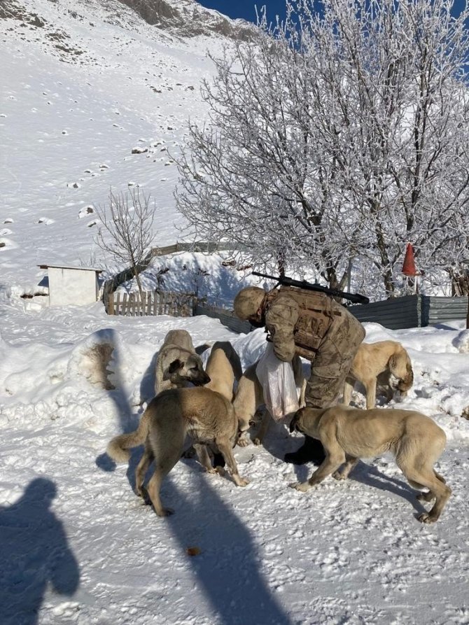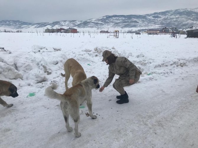 Kış mevsiminin etkili olduğu Tunceli'nin Ovacık ilçesinde jandarma ekipleri sokak hayvanlarını besledi.