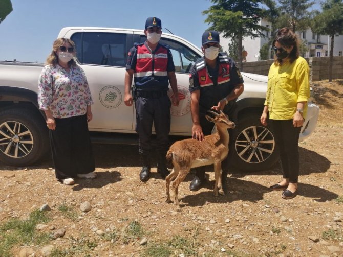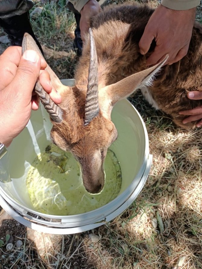 Kahramanmaraş'ta jandarma, bitkin halde bulunan dağ keçisine yardım eli uzattı.