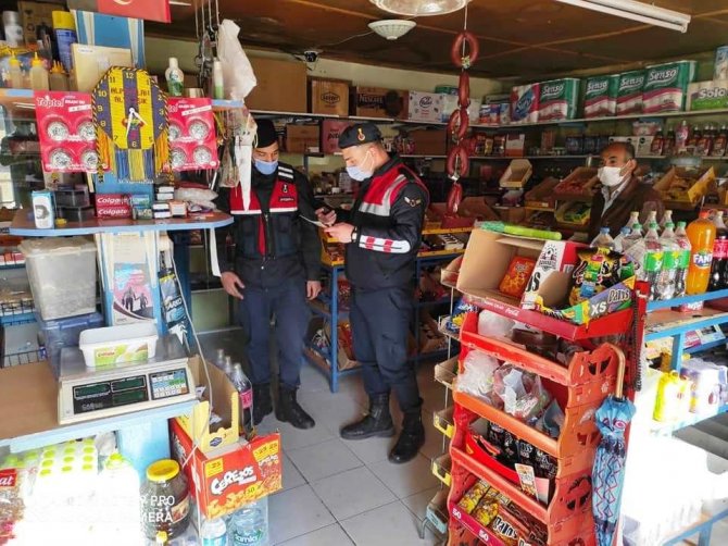 Jandarma Komutanlığı ekiplerince ilçeye bağlı köylerde bulunan yiyecek, içecek mekanları ve kahvehanelerde İlçe Hıfzıssıhha kurulunca alınan kararlarda belirtilen hususlar ile sosyal mesafe, maske ve temizlik kuralına uyulup uyulmadığının kontrolü yapıldı.