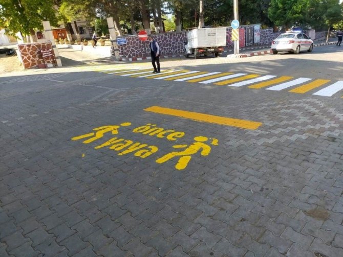 Kütahya’nın Simav ilçesindeki Jandarma Komutanlığı trafik ekipleri tarafından, İçişleri Bakanlığı’nın “Öncelik yayanın, öncelik hayatın” projesi kapsamında, yaya geçidi çalışması yapıldığı bildirildi.