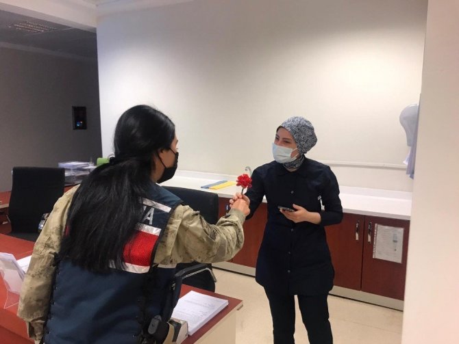 Jandarmadan sağlıkçılara çiçekli kutlama