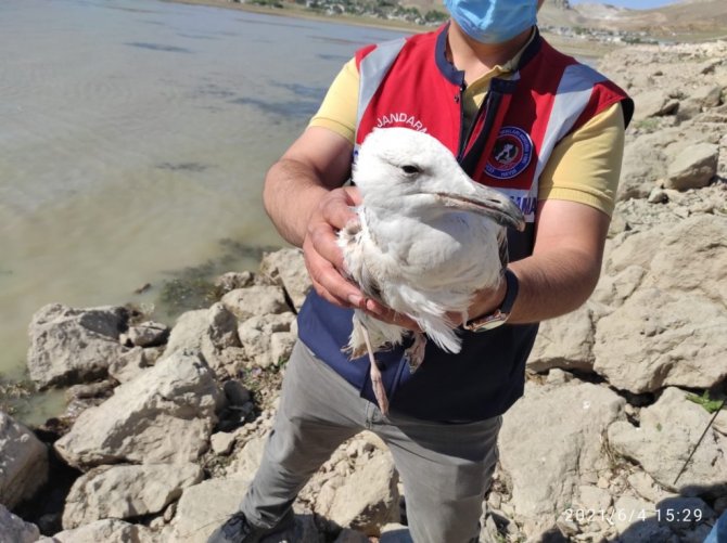 Van İl Jandarma Komutanlığı ekipleri tarafından Erçek Gölü kıyılarında yaralı bulunan martı ile ebabil kuşu tedavi altına alındı.