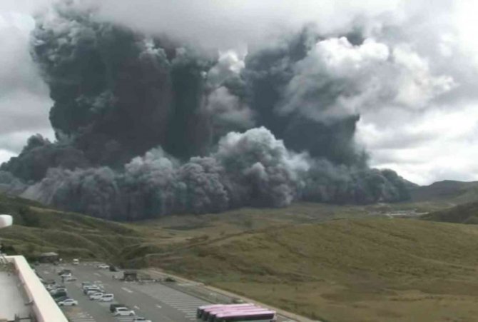 Japonya Meteoroloji Ajansı (JMA), ülkenin güneybatısında bulunan Kyushu Adası'ndaki Aso Yanardağında patlama meydana geldiğini açıkladı. Nakadake kraterinde yerel saatle 11.43'te gözlenen volkanik hareketlilik yetkilileri alarma geçirdi. Kumamoto eyaletinde bulunan ve bin 592 metre yüksekliği ile Japonya'nın ve dünyanın en büyük aktif yanardağı olarak bilinen Aso Yanardağındaki patlamanın ardından 5 ölçekli volkanik risk uyarı seviyesi 3'e yükseltildi.