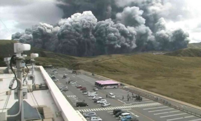 Japonya'da bulunan Aso Yanardağında patlama meydana gelirken, 5 ölçekli volkanik risk uyarı seviyesi 3'e yükseltildi.
