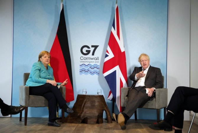 İngiltere'nin güneybatısında bulunan Cornwall'da G7 Zirvesi kapsamında için bir araya gelen liderler, ikili görüşmelerini sürdürüyor. İngiltere Başbakanı Boris Johnson ve Almanya Başbakanı Angela Merkel, Cornwall'daki Carbis Koyu'nda görüşme gerçekleştirdi. İngiltere Başbakanlık Ofisi tarafından yapılan açıklamaya göre görüşmede iki lider, İngiltere ile Almanya arasında ticareti, güvenliği ve halklar arasındaki bağları güçlendirmek için birlikte çalışmasının önemini dile getirdi.