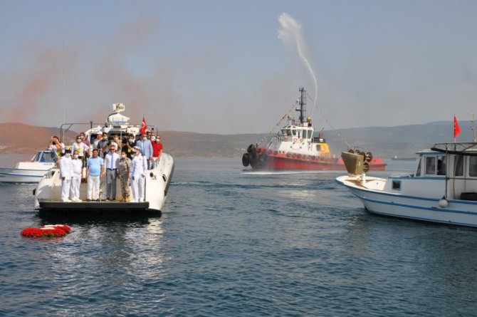 Atatürk Anıtı önünde gerçekleşen törenin ardından katılımcılar daha sonra tekne ve yatlarla denize açıldı. Milas Kaymakamı Böke, Garnizon Komutanı Albay Demiryakan, Milas Belediye Başkanı Tokat, Güllük Liman Başkanı Arslan ve Güllük Sah. Güv. 31. Bot. Komutanı Dz. Kd. Üsteğmen Meşeci tarafından deniz şehitleri anısına denize çelenk bırakıldı.