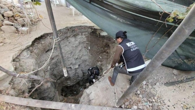 Polis ekipleri, kaçak kazı olayıyla ilgili ev sahibi A.E., kiracı M.Ç. ve H.Ş.'yi ifadelerini almak üzere emniyete götürmüş, şüphelilerin emniyetteki ilk ifadelerinde, su çıkarmak için evin bahçesinde sondaj yaptıkları sırada iş makinesinin belli seviyeden sonra ilerlemediğini fark ettiklerini, bunun üzerine kazma kürekle kuyuyu kazdıklarında kalıntıları bulduklarını söyledikleri öğrenilmişti.