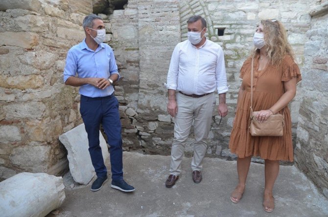 Kuşadası Belediye Başkan Yardımcısı Seyfi Seyhan Suvari, Anaia olarak da bilinen Kadıkalesi Höyüğü’nü ziyaret etti. Kazı Heyeti Başkanı Prof. Dr. Zeynep Mercangöz’den kazı alanında yürütülen bilimsel çalışmalarla ilgili bilgi alan Belediye Başkan Yardımcısı Suvari, “Kadıkalesi’ni en kısa sürede Kuşadası turizmine kazandıracağız” dedi.
