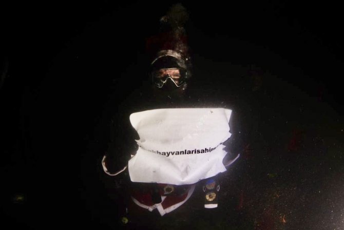 Noelbaba kılığında denize dalan dalgıçlardan Saruhan Singen, "Derinlere saygı dalışı elemanı ve bir Atatürk'ün neferi olarak bu sene daldık. Fakat torbada çok kötü şeyler var. Onu şimdi çıkarmıyoruz. Hastalıkları hepsini kovuyoruz. Bu sene 2022 senesi için hepimize hayırlı olmasını diliyorum. Sağlık, sıhhat ve mutluluk diliyorum. En büyük amacımız da hayvanların güzelliklere kavuşması, barınaklara kavuşması için daldık" dedi.