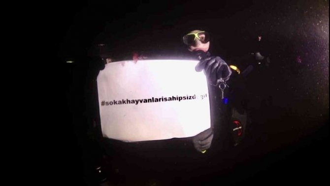 Kadıköy'de "Derinlere Saygı Dalış Topluluğu" üyesi dalgıçlar, sokak hayvanlarına yapılan şiddete dikkat çekmek amacıyla Caddebostan Sahili'nde dalış yaptı. Noel Baba kılığına girerek suya giren bir dalgıcın su altında " Sokak hayvanları sahipsiz değil" diye pankart açması dikkat çekti. Renkli etkinlik su altı kamerasıyla böyle görüntülendi.
