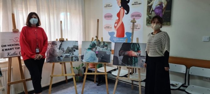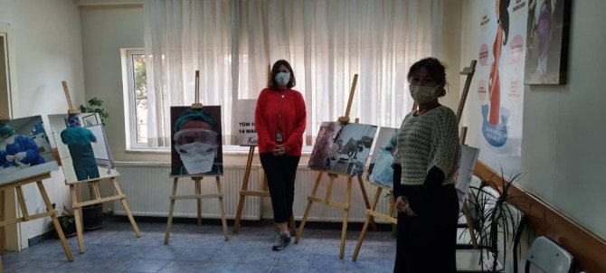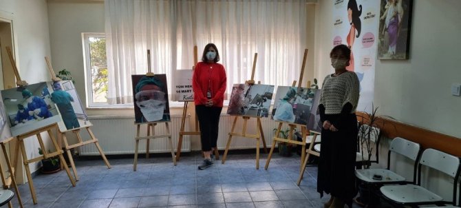 Kadın doktor hastane koridorunda pandemi de yaşananları açtığı sergi ile anlattı