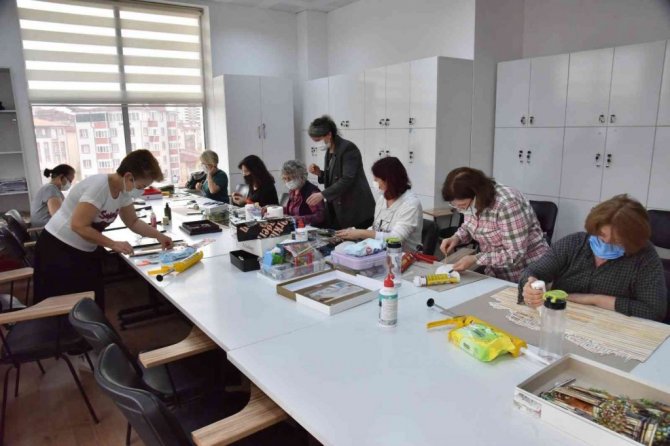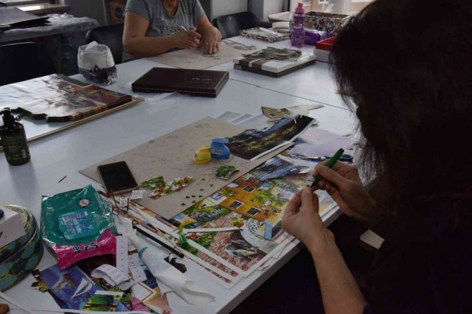 Bilecik'te rölyef kursuna katılan kadınlar kâğıtları sanata dönüştürürken, ortaya çıkan 3 boyutlu tablolar adeta göz kamaştırıyor.