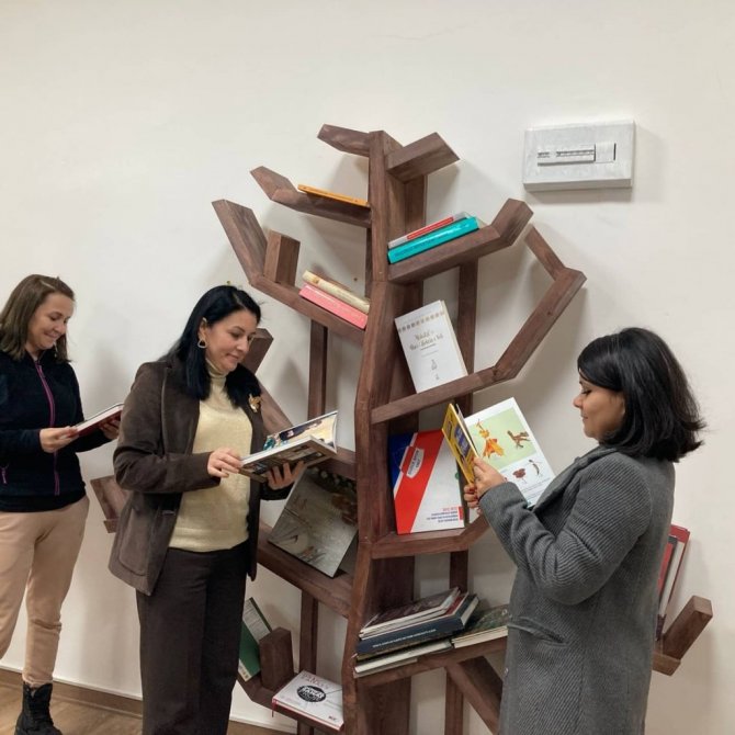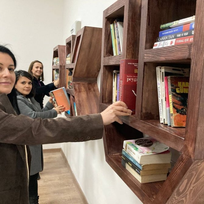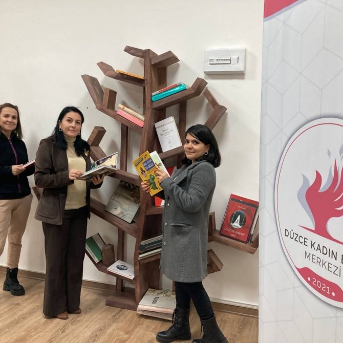DÜZCE (İHA) – Düzce Valiliği tarafından hizmete açılan Kadın Emeği Merkezi'nde oluşturulan kitaplığa Halk Kütüphanesi tarafından onlarca kitap hediye edildi.